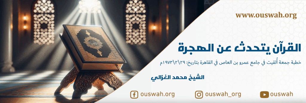 في سورة النساء ذُكرت الهجرة، ذكرت على أساس يستحق أن ندرسه في عصرنا، فإن الهجرة من مكة إلى المدينة كانت انطلاقًا بدعوة محبوسة مضطهدة إلى مكان جديد أو وطن جديد تستقر فيه وتحاول الانطلاق منه، ولذلك كان فرضًا على كل مسلم أن يترك مكة إذا كان يعيش في مكة، أن يترك جنوب الجزيرة العربية إن كان يعيش في جنوبها، أن يترك شمالها إن كان يعيش في شمالها، وأن يلحق بالإسلام الذي أسس مجتمعًا له في المدينة كي يدعم هذا المجتمع الجديد ويعلي فيه راية التوحيد، ويرد عنه عدوان الشرك، ويجعل قوى المؤمنين في هذا الوطن الجديد تتماسك وتتلاقى، ومن هنا فإن عدم الهجرة كان جريمة، واعتبر الذين يؤثرون الضعف في أرضهم اعتبروا حطب جهنم، وقال فيهم رب العالمين: (إِنَّ الَّذِينَ تَوَفَّاهُمُ الْمَلَائِكَةُ ظَالِمِي أَنْفُسِهِمْ قَالُوا فِيمَ كُنْتُمْ قَالُوا كُنَّا مُسْتَضْعَفِينَ فِي الْأَرْضِ قَالُوا أَلَمْ تَكُنْ أَرْضُ اللَّهِ وَاسِعَةً فَتُهَاجِرُوا فِيهَا فَأُولَئِكَ مَأْوَاهُمْ جَهَنَّمُ وَسَاءَتْ مَصِيرًا)، ثم استثنى القرآن أصحاب الأعذار الحقيقية فقال: (إِلَّا الْمُسْتَضْعَفِينَ مِنَ الرِّجَالِ وَالنِّسَاءِ وَالْوِلْدَانِ لَا يَسْتَطِيعُونَ حِيلَةً وَلَا يَهْتَدُونَ سَبِيلًا * فَأُولَئِكَ عَسَى اللَّهُ أَنْ يَعْفُوَ عَنْهُمْ وَكَانَ اللَّهُ عَفُوًّا غَفُورًا).