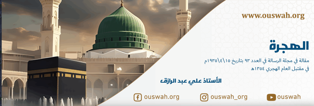 وفي الحق قد كانت هذه الهجرة في ظاهرها نهاية أسيفة لمعركة حامية طالت واشتدت بين دعوة الله ودعوة الطاغوت، ولقي المسلمون فيها بأساً عاصفاً وزلزلوا زلزالاً شديداً. ولعل كُتاب السيرة النبوية لم يستوفوا ما في هذه الحرب المرة من تفاصيل ودقائق، ولم يتوسعوا في وصف ما تخللها من بأس وشدة، ولعلنا لو استطعنا أن نحيط إحاطة شاملة بحقيقة هذه المعركة لوجدنا فيها قصة فريدة لمعركة كانت من أشد ما عرف التاريخ صراعاً بين الحق والباطل، واصطداماً بين كلمة الله العليا وكلمة الكفر السفلى. لسنا نعرف من أمر هذه الحرب القاسية إلا ذلك الذي يكرره كتاب السيرة ويتناقلونه من أحاديث الصحيفة، وأحاديث التعذيب والإيذاء ونحو ذلك، ولكن الذي يدرس طبيعة هذه الحرب، ويحلل ظروف زمانها ومكانها، ويستقصي ما ورد في سياق الحديث عنها في القرآن وفي السنة، وفي كتب التاريخ لا يسعه إلا أن يعتقد اعتقاداً جازماً بأن هذه المعركة قد كانت عنيفة إلى أقصى درجات العنف، وقاسية إلى أبعد حدود القسوة، وأنها كانت أكبر محنة ابتُلِيَ بها المسلمون في صدر الإسلام، وكانت نهايتها أن تشتت المسلمون، وأخرجوا من ديارهم بغير حق إلا أن يقولوا: “ربنا الله”. وخرج صاحب الدعوة ورفيقه عليهما السلام، كما خرج موسى كليم الله خائفاً يترقب (إذ هما في الغار إذ يقول لصاحبه: لا تحزن إن الله معنا) وهكذا كانت الهجرة نهاية أسيفة لمعركة طالت واشتدت بين دعوة الله ودعوة الطاغوت.